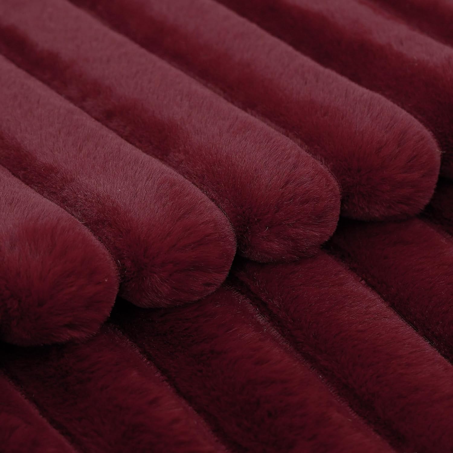 MADIZZ Set of 2 Faux Wool Plush Decorative Throw Pillow Covers 22x22 Inch Burgundy Fluffy Striped Soft Decorative Cushion Cover for Sofa Bedroom Pillow Shell