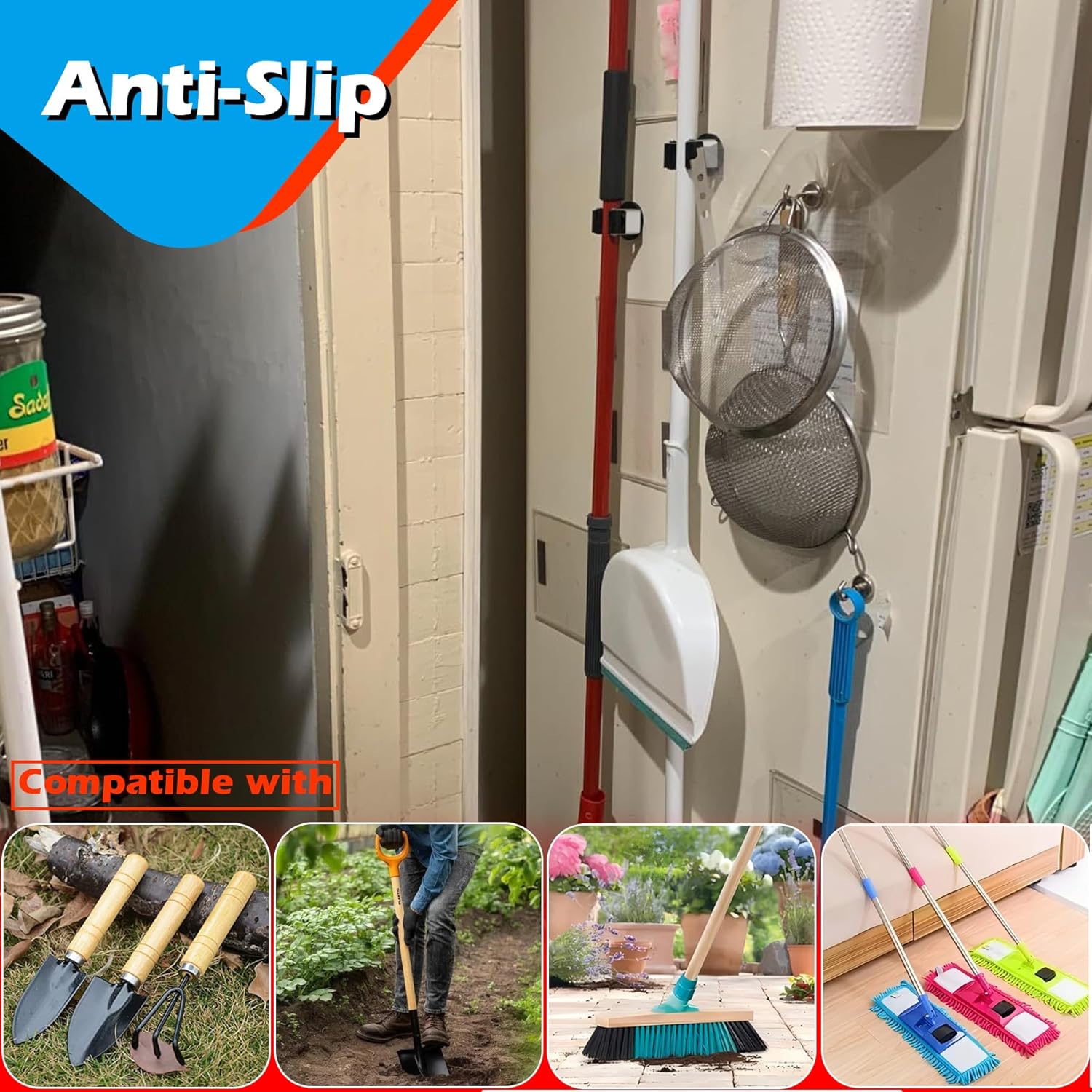 - Universal Magnetic Tool Holders: Movable broom mop clips are much handier for hanging brooms, mops, racks, rags, brushes, gloves, baseball bats, and so on. Suitable for kitchen, bathroom, garage, laundry, broom closet, and washing storage